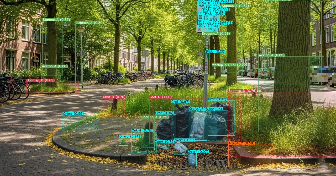 UrbanVue ontwikkelt AI-modellen voor beeldherkenning die duizenden straatbeelden analyseren volgens de beeldmeetlatten uit de Kwaliteitscatalogus Openbare Ruimte. Onze algoritmes herkennen objecten zoals zwerfafval, graffiti, verstopte kolken, onkruidgroei, scheefstand, asfaltschade en veel meer. Met deze digitale schouw ondersteunen we beheerders en inspecteurs bij het slim monitoren van de openbare ruimte. Door AI-beeldanalyse worden afwijkingen sneller opgespoord en objectief vastgelegd, waardoor inspecties fijnmaziger, consistenter en kostenefficiënter worden uitgevoerd. De verwerking gebeurt volledig AVG-proof, met automatische anonimisering van privacygevoelige elementen. Het resultaat: betrouwbare data die besluitvorming versnelt en de noodzaak voor handmatige veldinspecties vermindert.