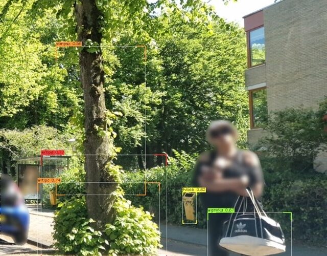 Deze opname toont een boom waarbij UrbanVue’s AI wortelopslag en opschot rond de stam herkent.